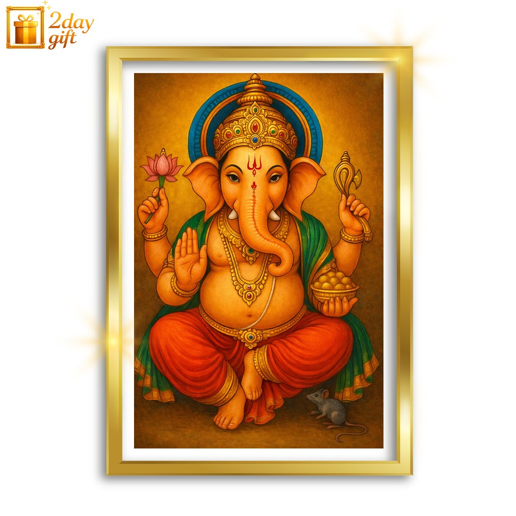 Lord Ganesha A4 Size Framed Wall Hanging – Hindu Devotional Art