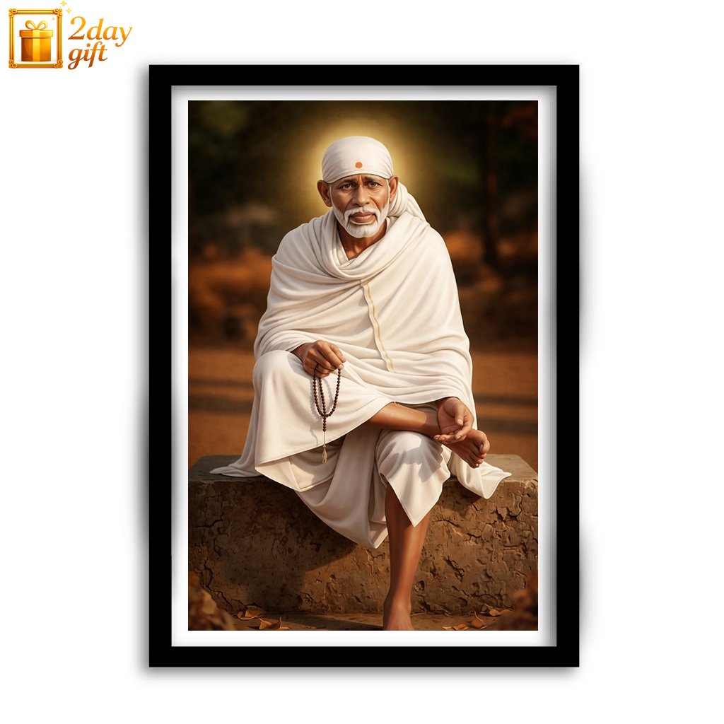 Lord Sai Baba A4 size photo frame is ideal for home, pooja room, or office décor. Features a high-quality print, durable frame, elegant design, and brings spiritual peace, positivity, and divine blessings to your space.